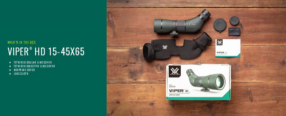 Telescopio Vortex Viper HD 15-45x65 de gama alta con óptica HD de dispersión extra baja, revestimientos XR™ Plus Fully Multi-Coated y protección ArmorTek. Sellado en gas Argón e impermeable, ofrece imágenes brillantes, alto contraste y máxima resistencia en condiciones exigentes.